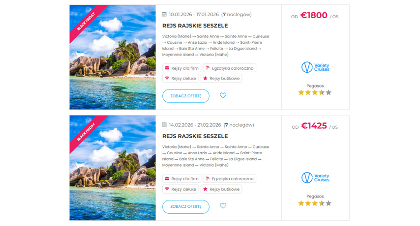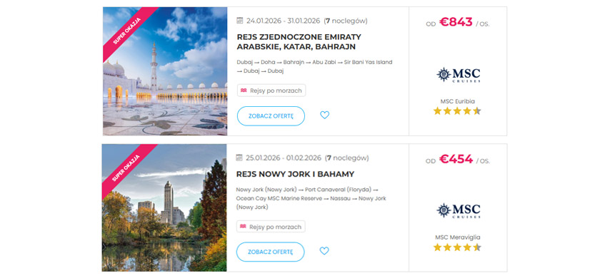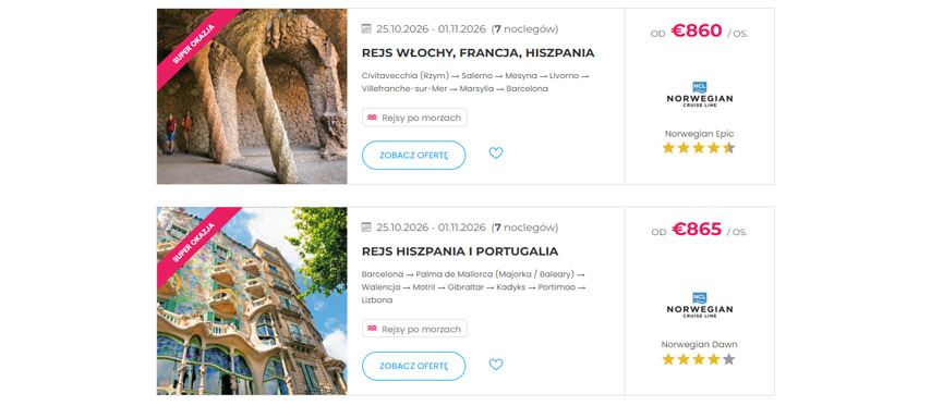 To idealna propozycja dla osób szukających dobrej ceny w połączeniu z bogatą rozrywką i nowoczesnymi statkami.