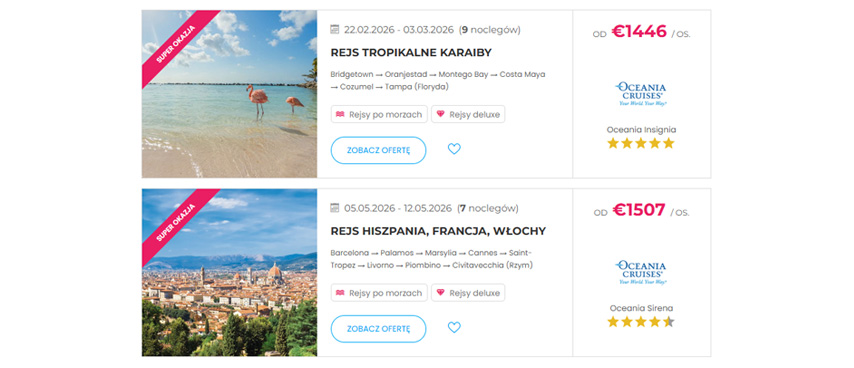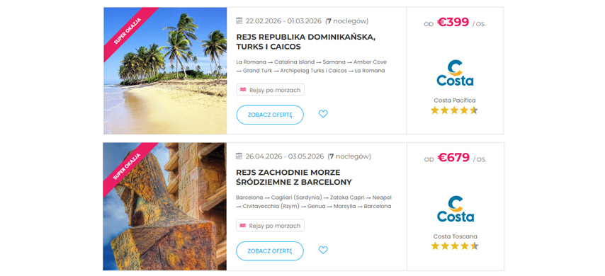 Nie czekaj - najlepsze rejsy z najlepszymi zniżkami rozchodzą się bardzo szybko!
