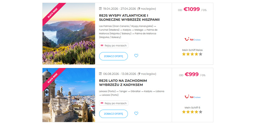 nicko cruises już tradycyjnie włącza się w Black Week, oferując prostą i bardzo korzystną zniżkę. Sprawdź ofertę.